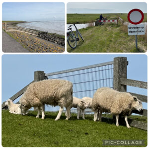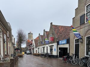 Om 9.02 (toch iets te laat) brengen we de fietsen terug en maken een praatje met de verhuurder. Omdat we op weg zijn naar het dorp, lopen we maar gelijk door naar de supermarkt. Het is nog heerlijk stil overal. Bij de bakker kopen we een halfje suikerbrood. Uiteindelijk zijn we in Friesland!