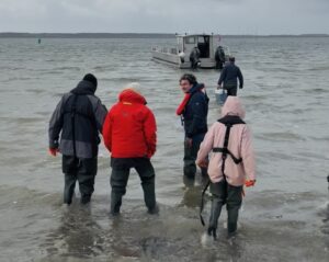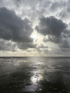 We hebben een klein uurtje rust en dan begint ons volgende avontuur. We gaan op excursie met Werner. Hij is de Oesterman van het eiland en heeft een oesterbank in het Oosterom (in de Waddenzee).