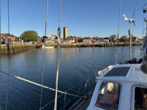 Tien uur na ons vertrek maken we vast in de vissershaven van Stavoren. Een leuk stadje en nu nog niet druk.