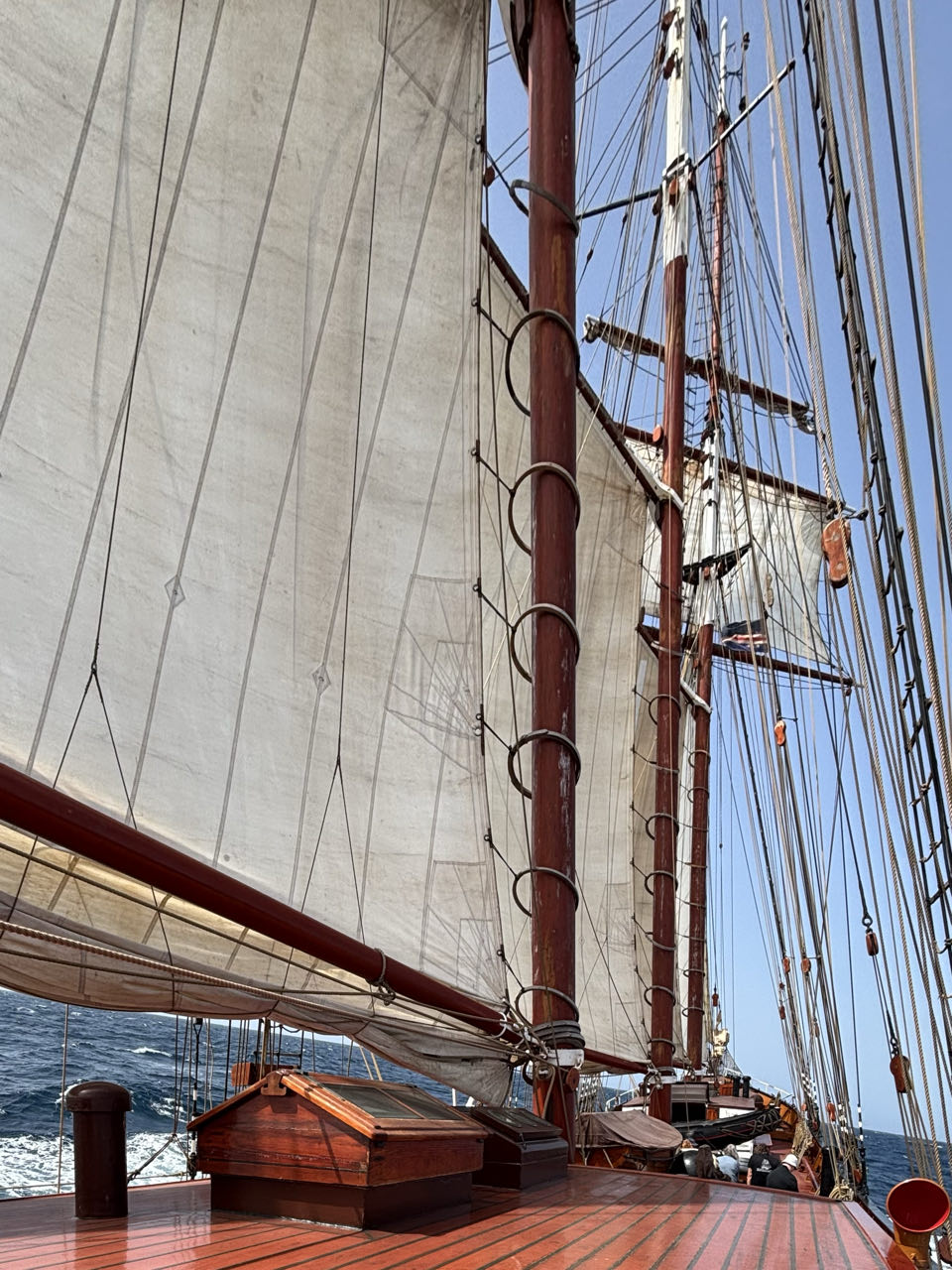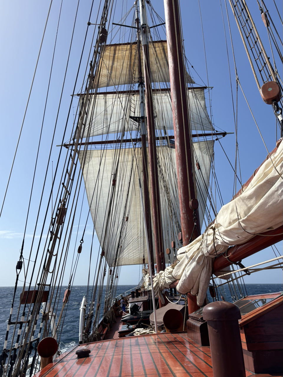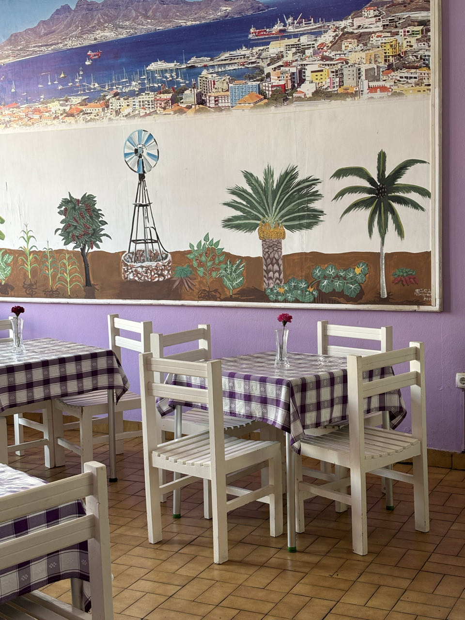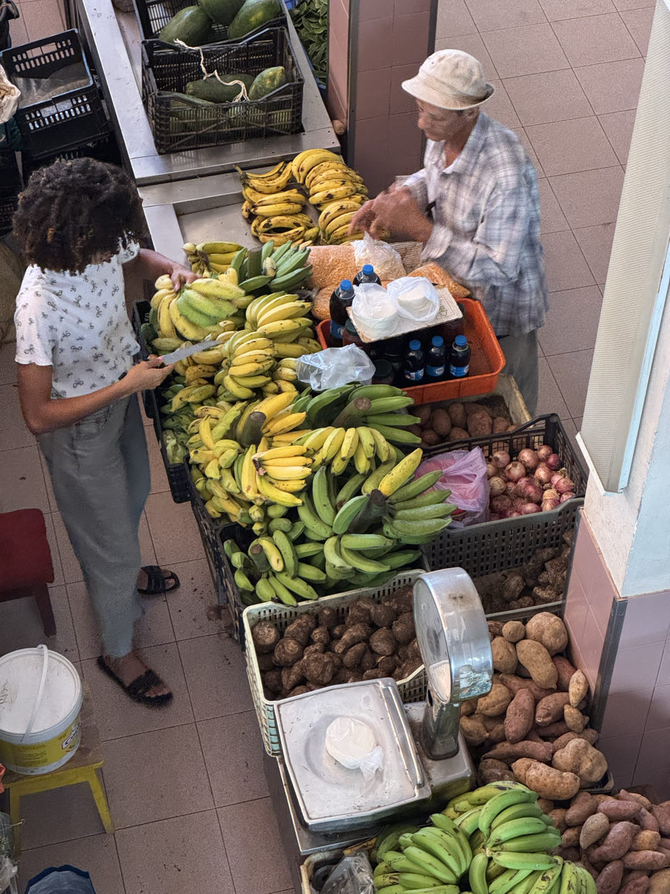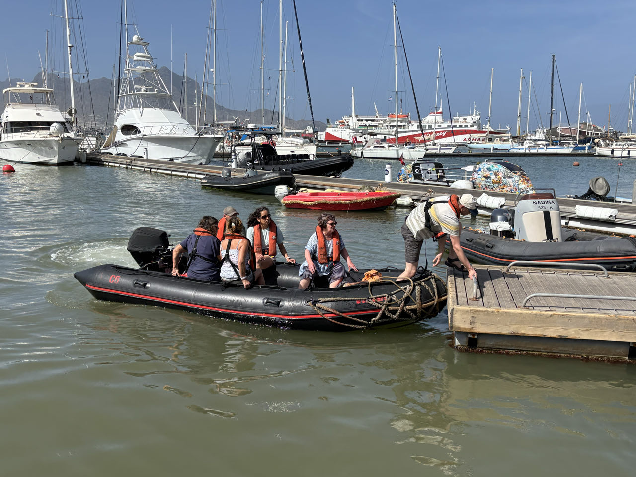 We staan extra vroeg op vandaag. Het ontbijt is om half zeven, want de pont naar San Antao vertrekt om 8 uur precies. Onze kapitein heeft de kaartjes geregeld en ervoor gezorgd dat er een gids met een busje voor ons klaar staat aan de overkant. Het is nog een beetje fris als we vertrekken, dus we doen een dunne trui over ons T-shirt aan.![]()