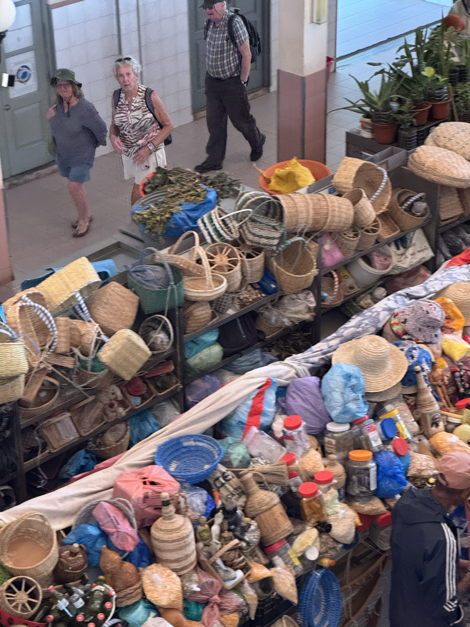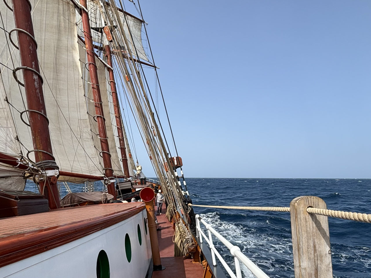 Daar staat de koffie al weer klaar. We kletsen gezellig met elkaar op het dek en ineens klinkt de bel voor het diner. Dat is fantastisch! Alsof de kok had gehoord dat ik het gister nogal matig vond. Hij is naar de vismarkt geweest en heeft grote papagaaivissen gekocht en heel lekker klaargemaakt in de oven. Daarbij is er zoete aardappel en paprika uit de oven met kruidenkaas erover. En ook nog een bak sla. Als toetje is er hazelnoottaart met room. Oei, alles is zo lekker. Dat zijn weer veel te veel calorieën voor één dag.
