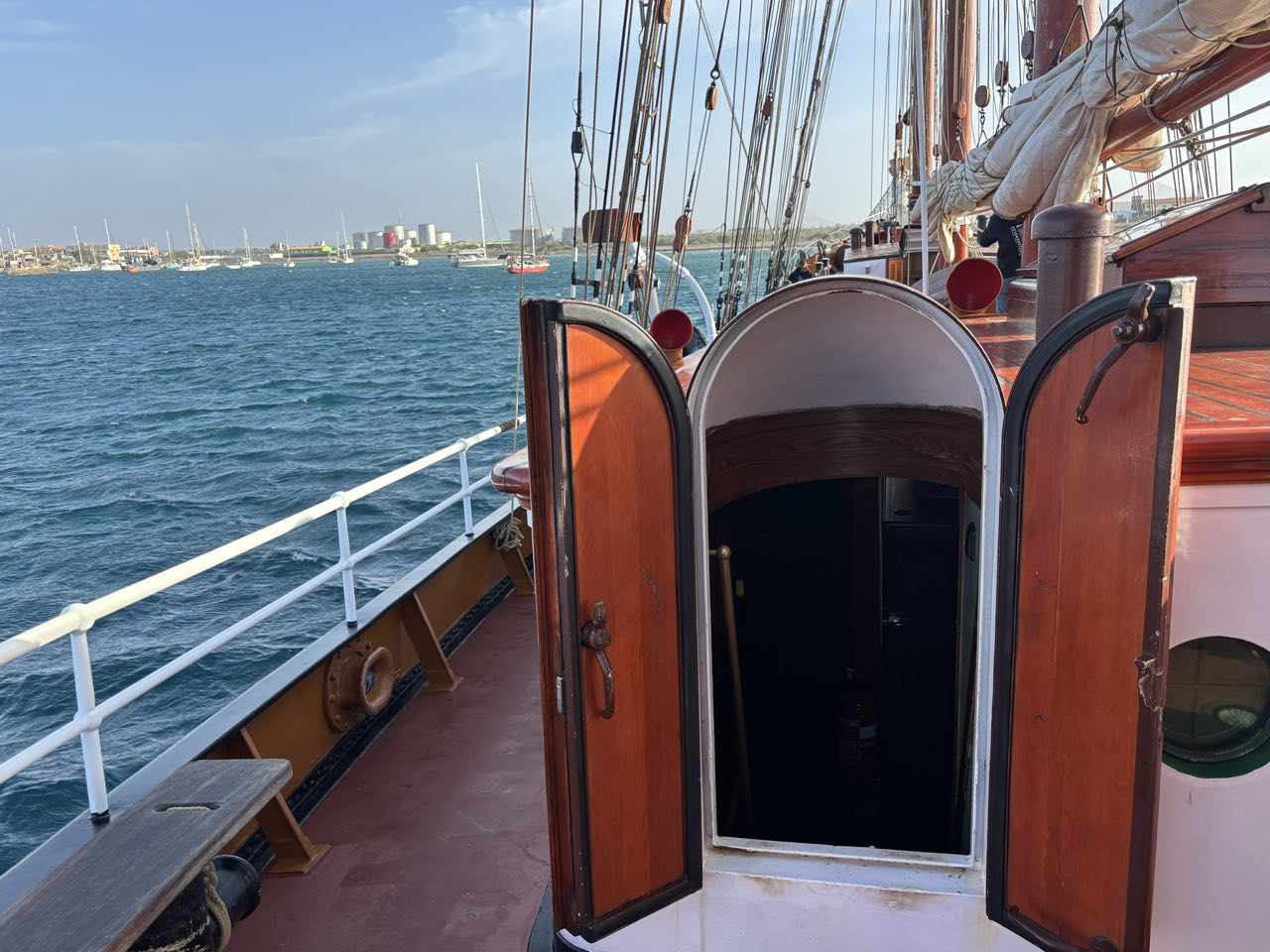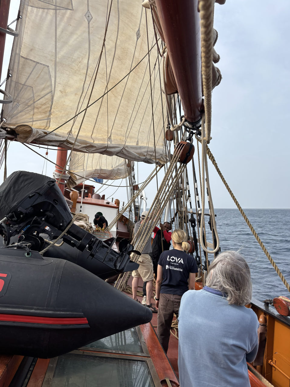 Via een niet meer werkende grogue distillery, rijden we terug naar de pont. Een uur later worden we weer opgehaald door de dinghy en naar de Oosterschelde gebracht.