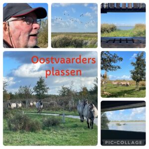 De dag erna was het zonnig weer en reden we naar de Oostvaardersplassen bij Lelystad. een heerlijk gebied om te wandelen, ruimte te ervaren en te genieten van de vele vogels en loslopende konikpaardjes. We gaan vast nog een keer terug.